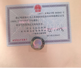 駐美使領館會(huì)在文書(shū)第一頁的背面附上(shàng)一張認證貼标卡,認證貼标卡證明(míng)此文書(shū)上(shàng)的印章以及官員簽字屬實,并聲明(míng)文書(shū)內(nèi)容由出文機構負責。